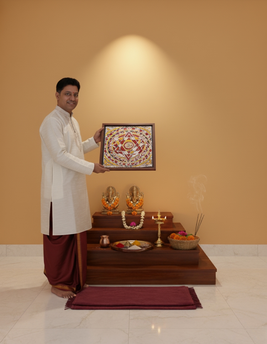 The interlocking triangles represent the union of the divine masculine and feminine, the harmony of creation and dissolution. At the center lies a radiant bindu, the point where all journeys begin and all experiences dissolve — a reminder to return to your core, your breath, your truth.