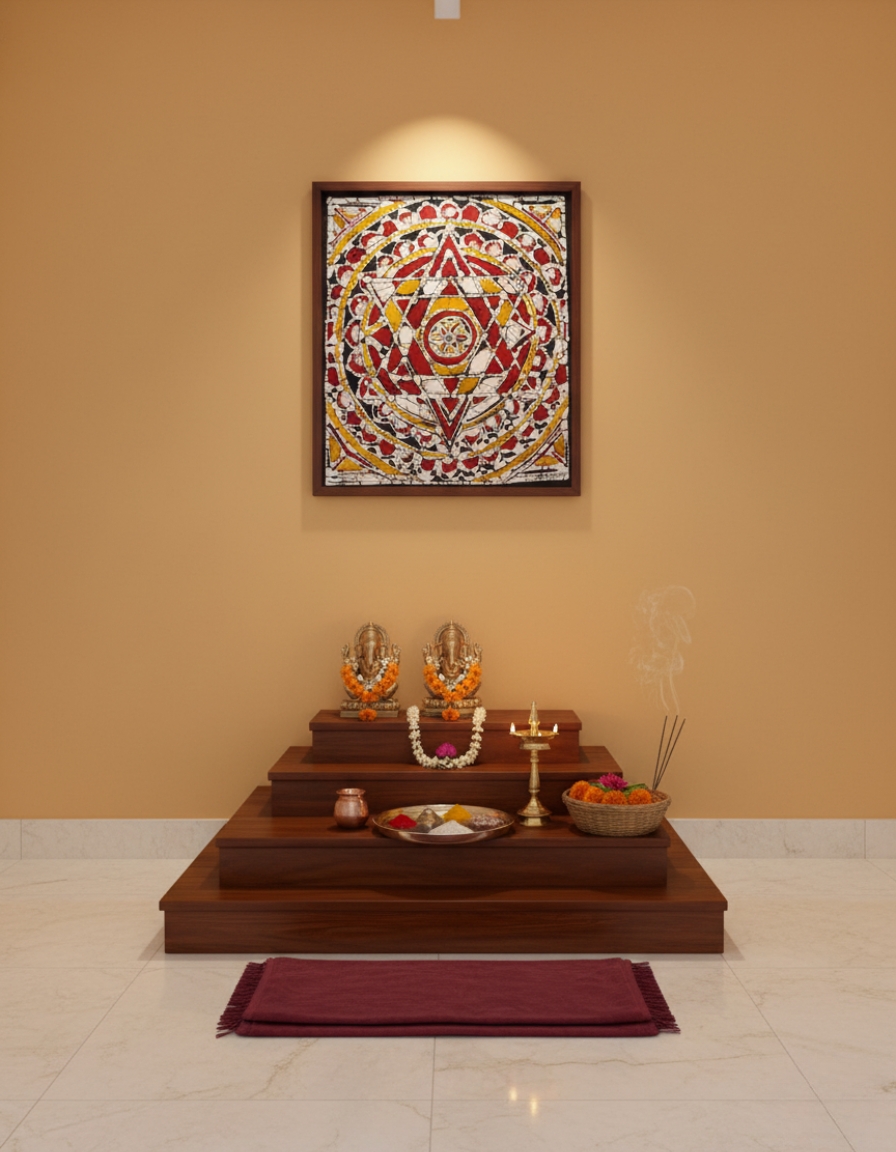 Enter the heart of stillness with this hand-crafted batik mandala, where ancient geometry meets soulful artistry. Painted in deep maroon, gold, and white, the mandala unfolds like a cosmic wheel — each concentric ring symbolizing expansion, protection, and the eternal dance of energy.